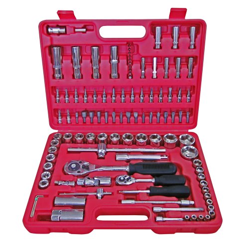 Ce set de douilles contient 2 cliquets de transmission de 1/2" et 1/4" avec dessin Super Lock. La boîte comprend également un cliquet à dents 48". Un tournevis hexagonal moleté et le tout est en acier chromé.