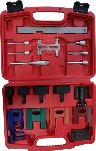 Ce coffret comprend 19 pièces de blocage pour volant moteur, arbre à cames et vilebrequin. Ces outils très spécifiques sont essentiels pour la fixation des