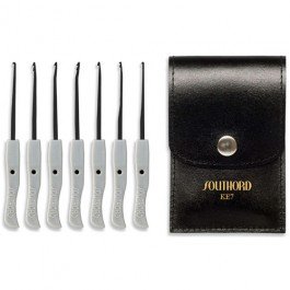 Kit d'extraction de clé cassée. Kit de crochetage SOUTHORD 9 Pièces avec manche métal pour thermoformé. 6 Crochets + Entraineur + extracteur de clé.